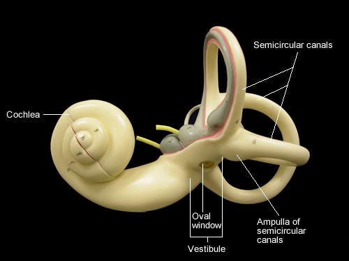 This has led me to imagine a fourth semicircular canal, a hyper-canal, one who is primed to receive vibration in a higher dimension.