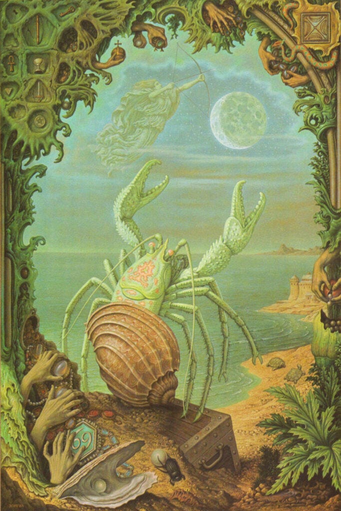 In Otto Isakower’s paper on auditory sphere he begins by commenting on Josef Breuer’s suggestion (in the late 1800s) that otolith organs do not play a role in the function of hearing, rather in the perception of movement and position of body, relative to environment. Isakower, a physician, relays an intriguing observation, he tells us that certain crustaceans lose their otoliths, together with their shell, at every moult, subsequently developing new ones, often by searching the aquarium floor, in order that they might fill their otocysts with grains of sand, literally coming apart, casting away.
